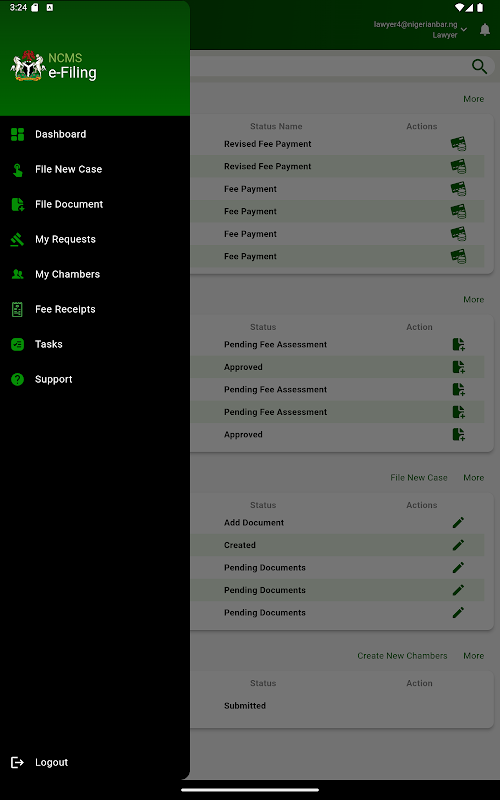 The NCMS e-filing application is an integral part of Nigeria Case Management System (NCMS) such that filed processes are automatically uploaded into the corresponding Case / Appeal Number. The processes can be filed into any Nigerian Court that have been enrolled into the NCMS.