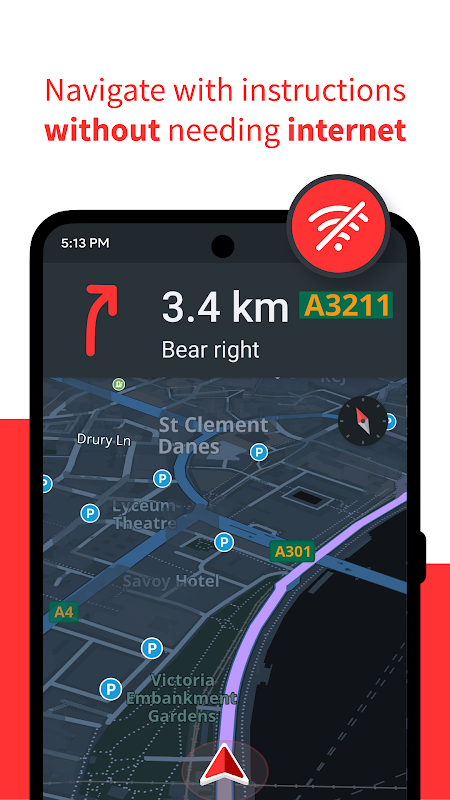 Offline maps with day and night mode; Free to use whenever you need.
