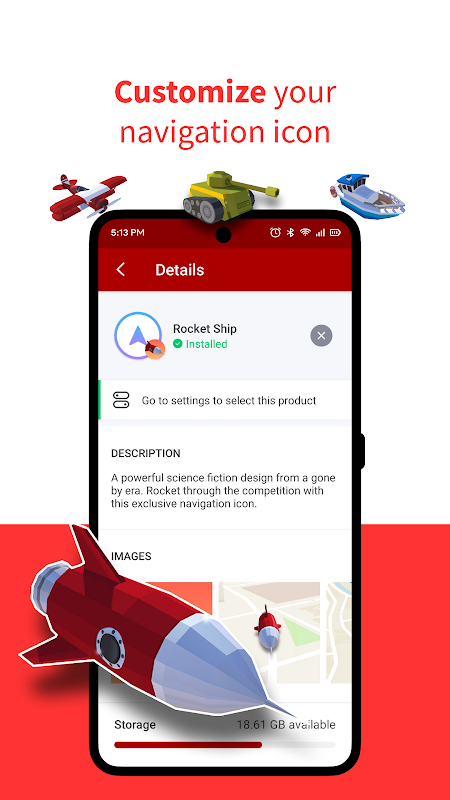 Personalize your navigation with freely available navigation voices and icons.