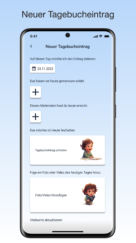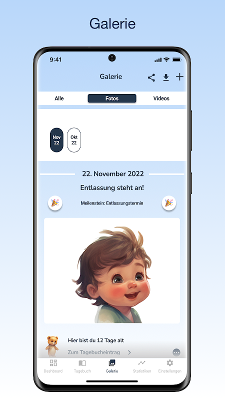 Welcome to NeoDiary, the lovingly designed app that allows you to capture the magical moments of your baby's first weeks of life in an unforgettable way. With the NeoDiary app you can follow your newborn's journey from their first breaths to their first steps in a beautiful digital diary.