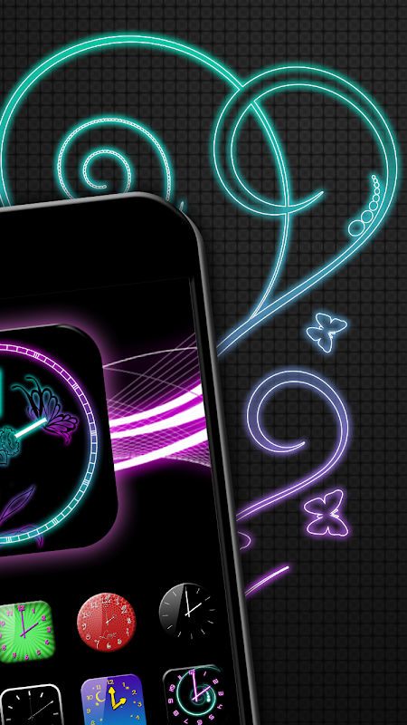 Neon Alarm Clock has come, so forget about all the old alarm watch apps that you came across and probably didn't like! You will see how easy it is to tell time with this “night clock widget”! If you are tired of the digital gadgets, you should get this new night time app! Wait no more for your ideal glowing clock app, because this is it! Personalize your phones with this analog widget! Be stylish and classy with a very popular night clock with date and alarm! Once you install this analog watch widget, and when you see how useful and reliable it is, you will become a true fan! Prepare for an extraordinary experience with a new time widget display in this new watch! A black analog clock with a neon twist can be yours FOR FREE, so hurry up and get it!