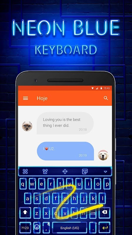 Neon Blue Keyboard Theme & Emoji Keyboard makes your keyboard special and cool!