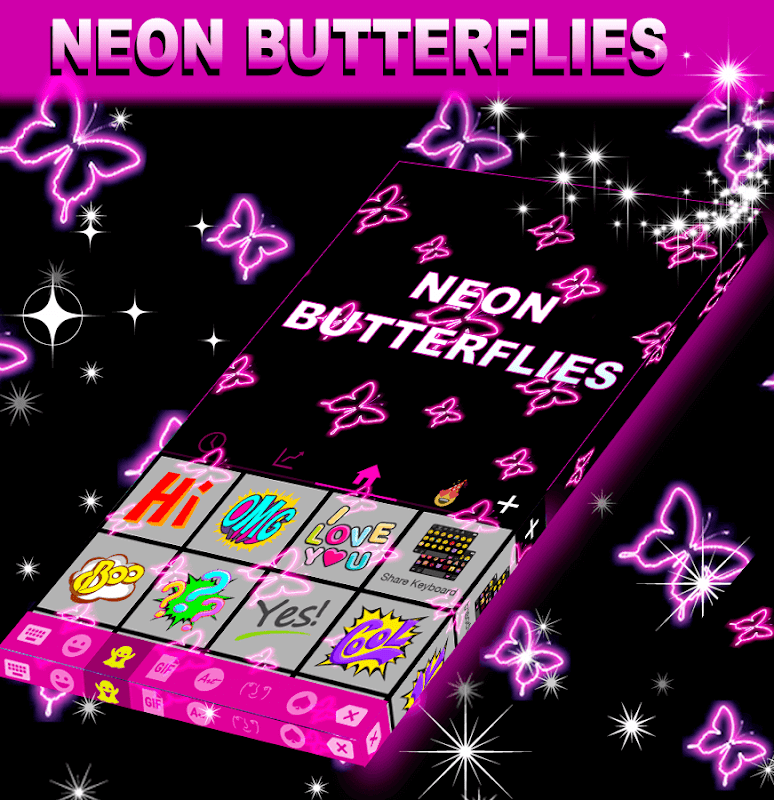 Neon Butterfly Emoji Keyboard Theme Free specially designed for Neon and Butterflies lovers. Everyone loves Neon. You’ll fall in love with this Neon keyboard for sure. Download Neon Butterfly Emoji KEYBOARD THEME and Try it out!