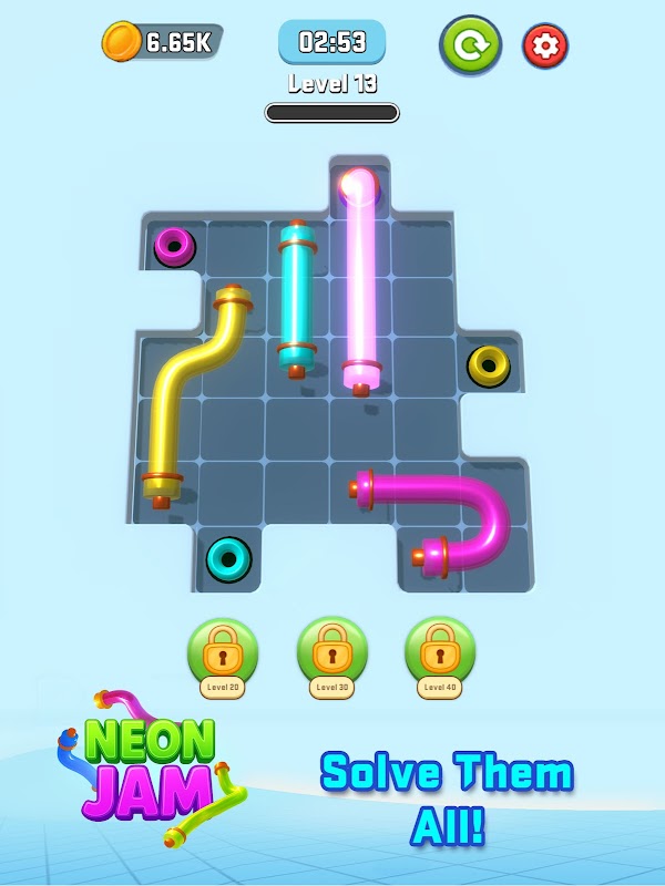 Neon Jam is a glowing, brain-teasing puzzle game where you connect vibrant neon pipes to power up a massive electric statue!