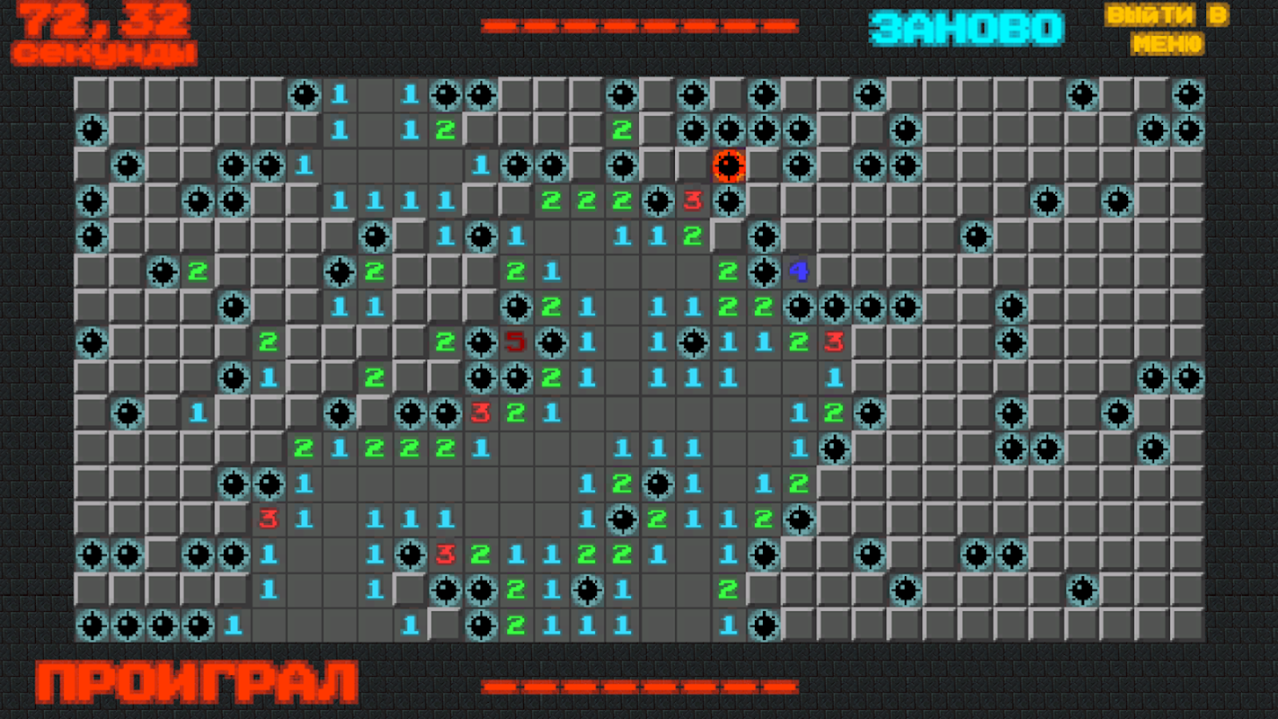 If there is no mine under the open cell, then a number appears in it, showing how many cells adjacent to the newly opened cell are “mined”; using these numbers, the player tries to calculate the location of the mines, however, sometimes even in the middle and at the end of the game, some cells still have to be opened at random.