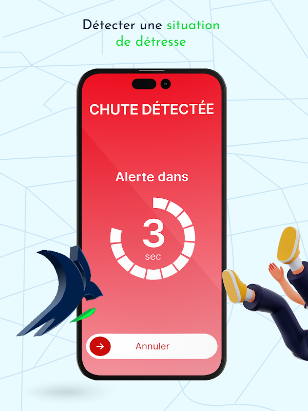Nomadia Protect uses the resources of your phone to detect falls or immobility, or to generate an SOS and locates you via GPS.