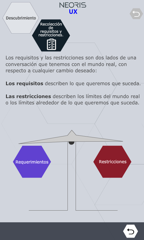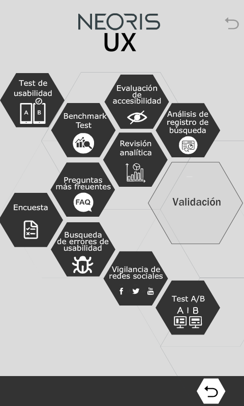 Basic scheme of Neoris User Experience Design (UX) methodology.