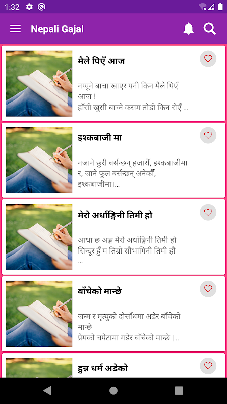 User can easy to read the new Nepali Gajalharu in our Nepali Gazal App.