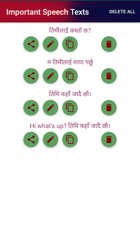 Nepali Speech To नेपाली Text ~ Speak in Nepali App is easy Google Nepali Speech to Text. Speak out any Words and Sentences in Nepali and it will be written in Nepali Text. You can save your speech text. Copy to clipboard. Edit, Delete and Share.