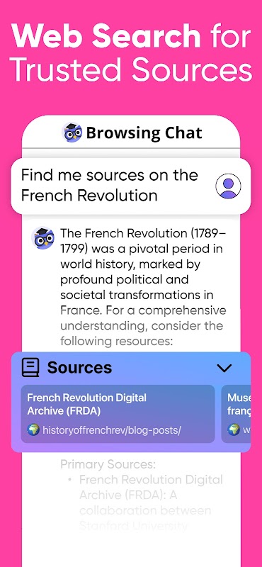 Find the most relevant and accurate information instantly. With built-in web search, Nerd AI ensures you have the resources you need to solve any problem or need help with your homework.
