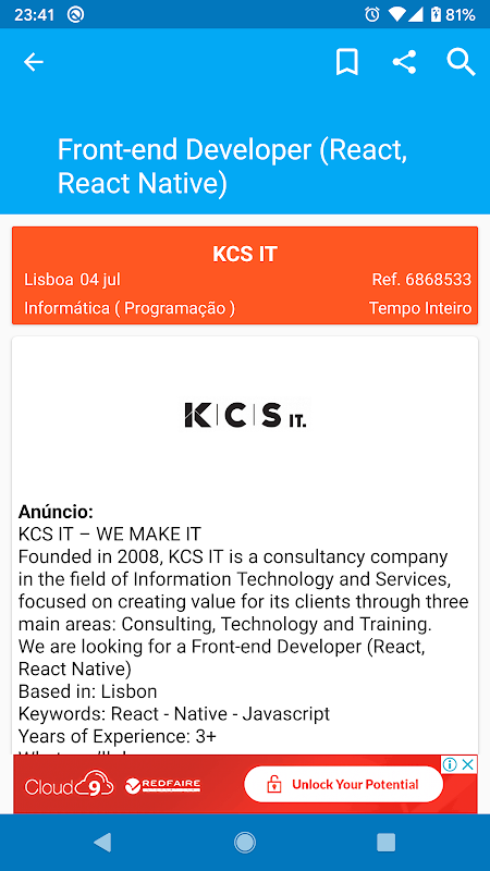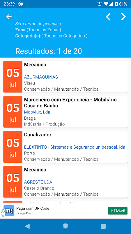 Although focused on the job market in PORTUGAL, the app also allows you to search for opportunities in Portuguese-speaking countries and other regions.