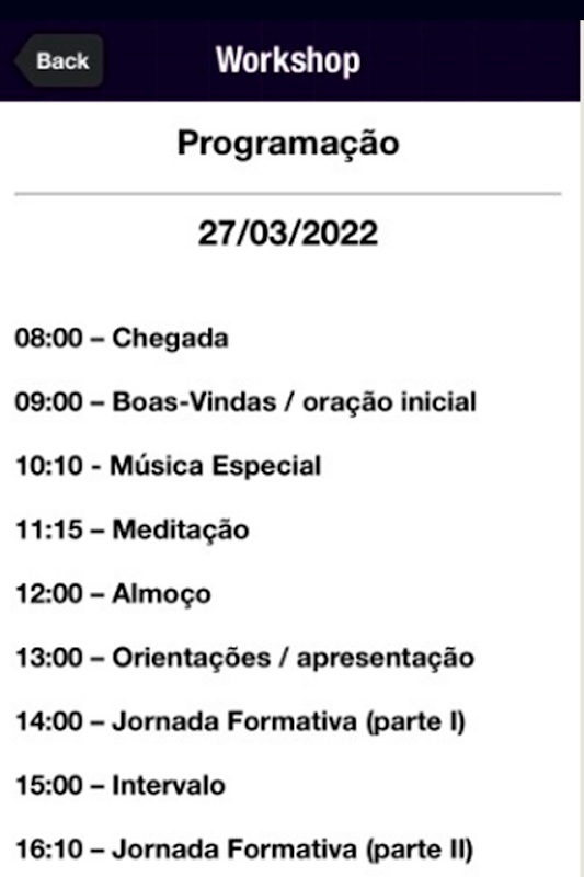 Aplicativo para eventos, workshop e programações da NET.