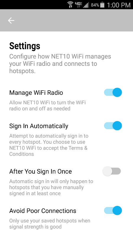 Net10 Wi-Fi app finds, manages, and automatically connects to available WiFi