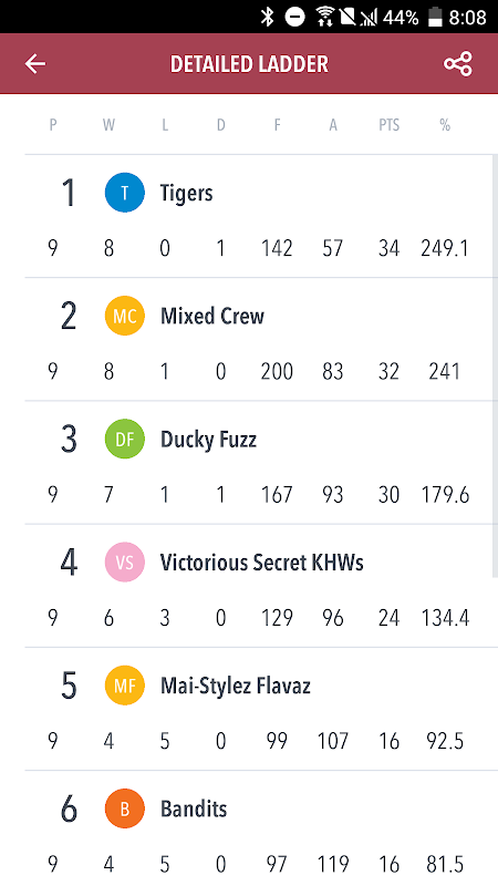 • Detailed competition ladders