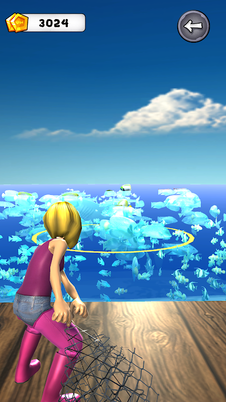 ・ Look at the shadow of the fish and observe the position where the net is thrown.
