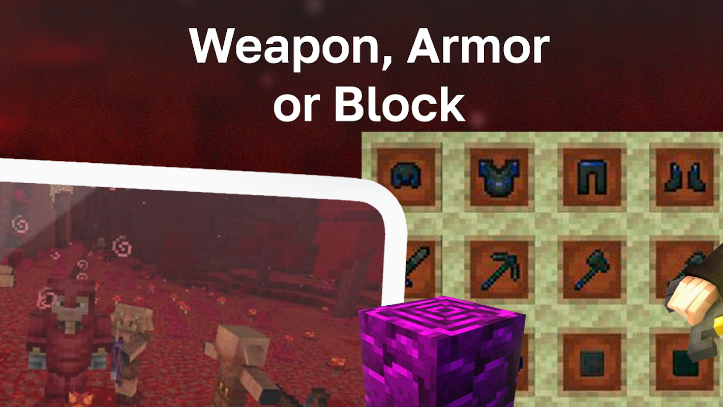 This addiction will secure your world so you can be calm and not worry about your protection. Mods and addons such as Netherite mod for Minecraft add material, armors and weapon with which you can fend off enemies without using block / blocks in mc Pocket Edition. Addon Netherite in Minecraft uses a special improved workbench for crafting, so you need to remember to craft it before any actions related to netherites.