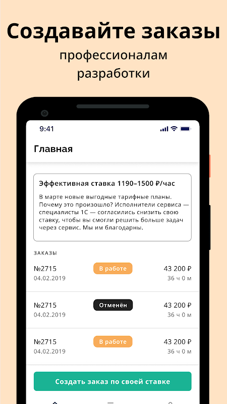 Client's personal account for access to the programmers' marketplace