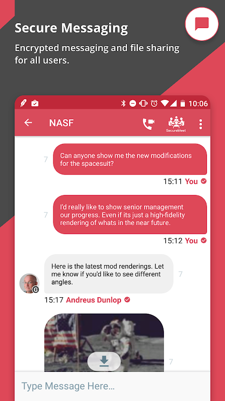 Drives collaboration and productivity by empowering employees to communicate securely and safely over their preferred channels for communication – text, voice, and video in an instantaneous, contextual, and highly engaging mobile messaging environment.