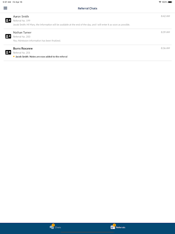 CareChat allows users to securely communicate without leaving Referral Manager. The chat feature is currently being built to work across multiple Netsmart applications, as well as its own standalone mobile app. The chat feature enhances collaboration, promotes efficiency and provides quick communication.
