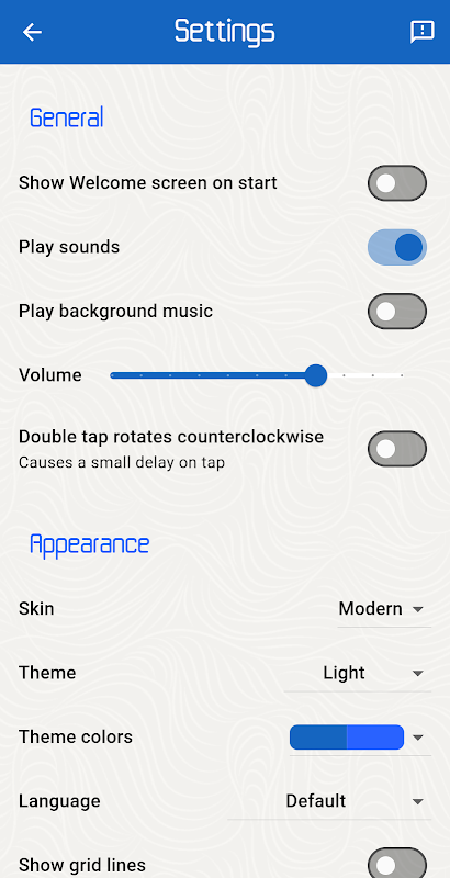 There are three levels, different by size: Easy (6x4), Normal (9x6) and Hard (12x8).