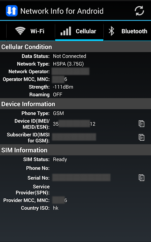 - Display Cellular status and info, such as phone number, service provider, Device ID, SIM card information