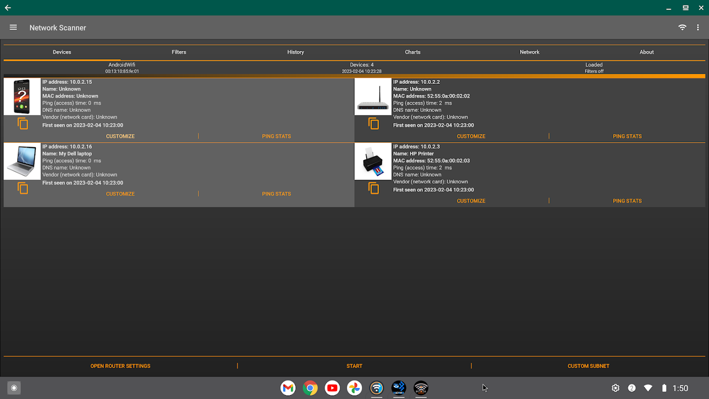 You can easily see all of the available data of the connected devices such as mobile phones, laptops, printers and others.