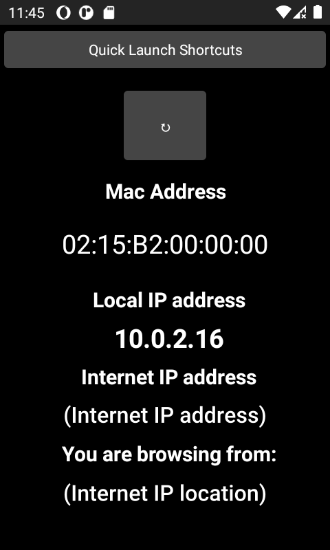 In the IP info screen, check for device Internet/Local IP address, IP location, Mac Address(Upto Android Q).