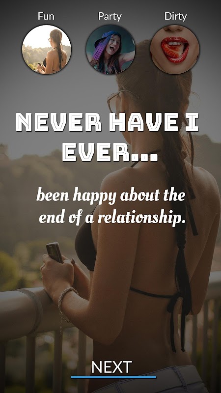 Never have I Ever is the ideal drinking game for parties and pre-parties. The game contains hundreds of questions in the categories Fun, Party and Dirty +18. Fun is for casual use, Party is for drinking, and Dirty is for the sexy and naughty š The game is easy to learn, so just get started!