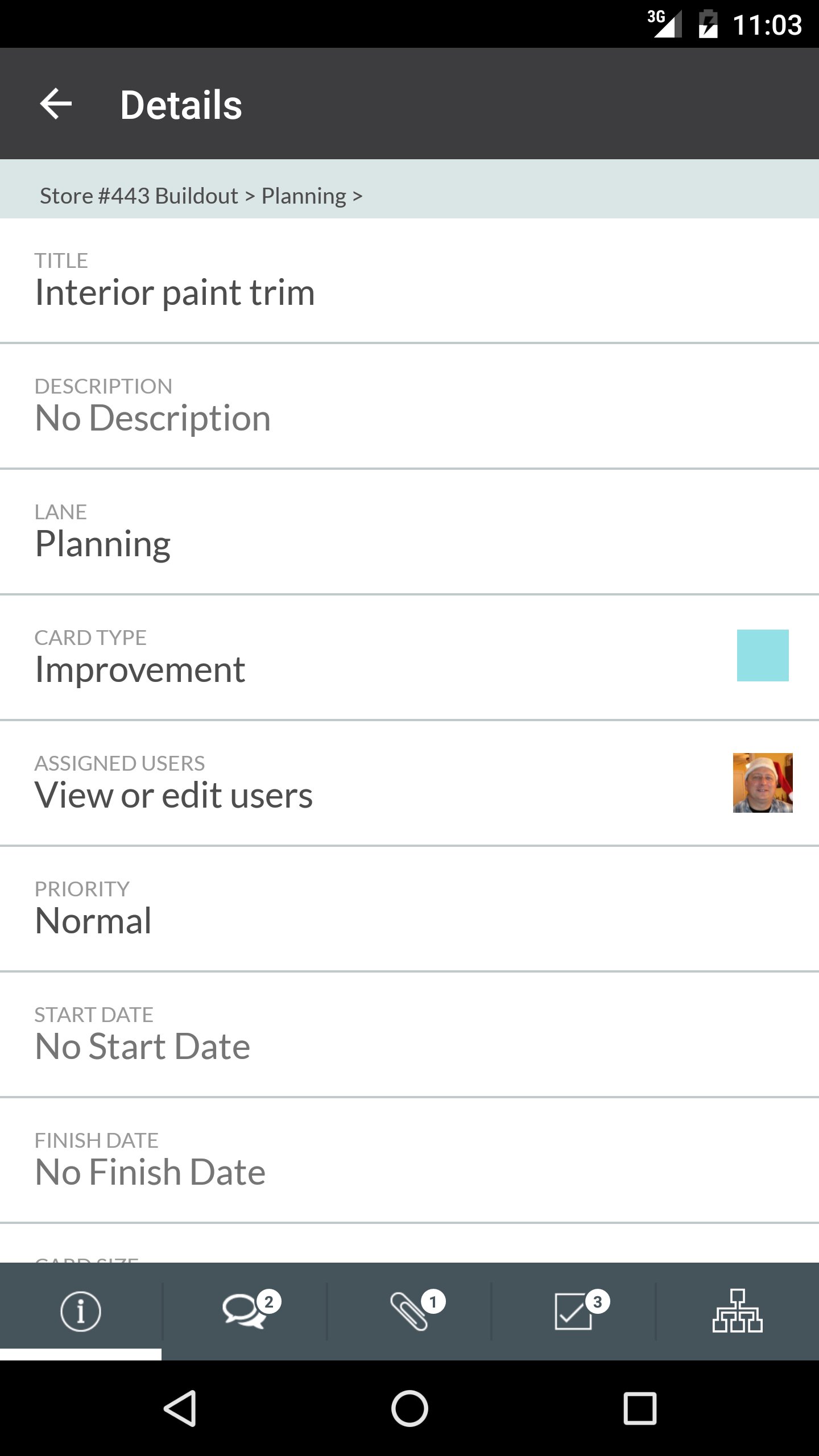 • Tap cards to view and edit details, including comments, lane status, deadlines and attachments