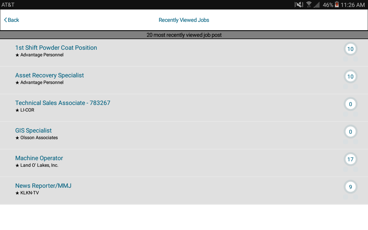 Instantly return to previous searches or recently viewed jobs with a single tap.