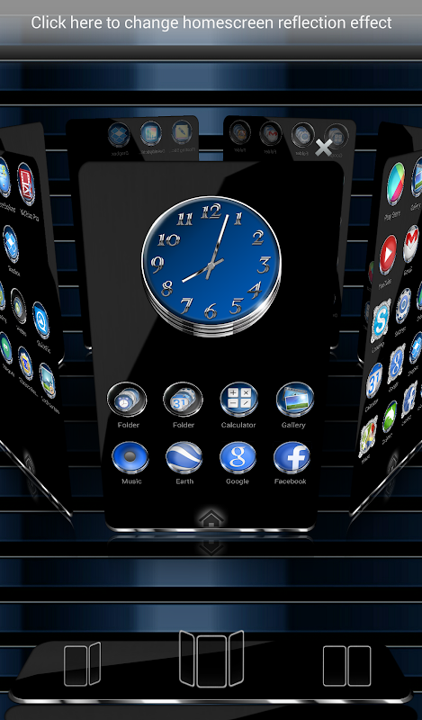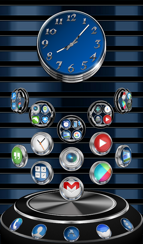 Next Launcher 3D theme. Extremely detailed and high quality elegant and modern Next Launcher theme with high definition graphics auto-themed icons, 11 custom themed HD wallpapers, and a metal clock widget, to give very detailed and defined graphics even in devices with the highest resolution screens. Everything is themed to the last detail, using metallic textures, lighting effects, reflections and gradients to give a great contrast and quality look.