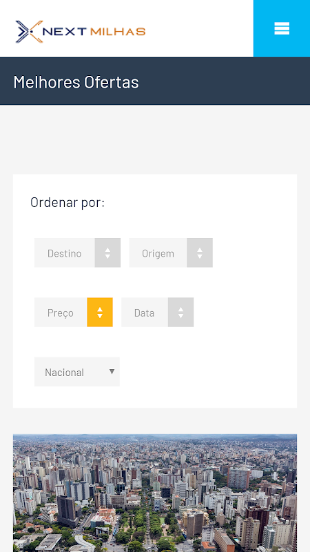 A Next Milhas é um aplicativo que busca passagens aéreas tanto por dinheiro quanto por milhas.