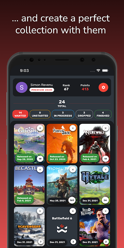 Be easily up to date on upcoming releases on any platform (PC, Xbox One, Xbox Series X, Playstation 4, Playstation 5, Switch, Stadia and even on Android and iOS smartphones)