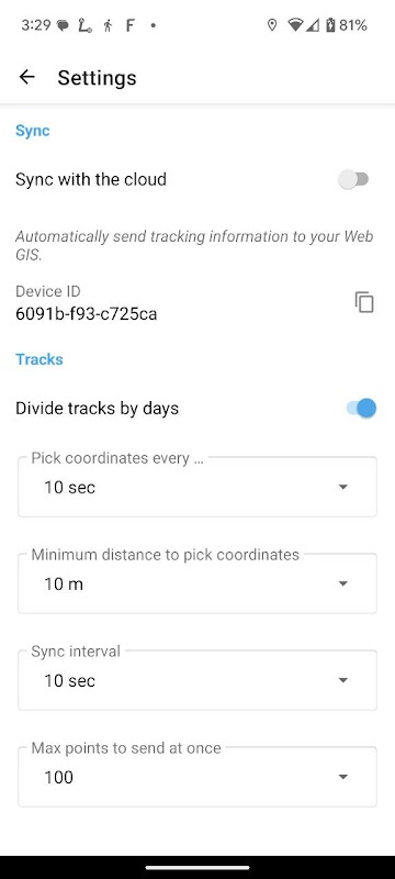 Before you start, you log into your Web GIS (cloud or server). Tracks are automatically synchronized: as soon as recording begins, the data is saved to the Web GIS at a specified interval.