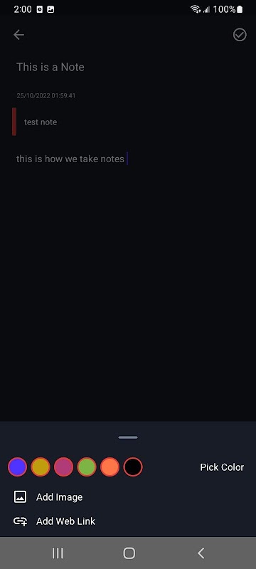 * Color Code Feature allows you to color code your notes by importance. You can choose from a small variety of colors to mark the importance. Just tap the bar above the keyboard to access the Feature Menu.