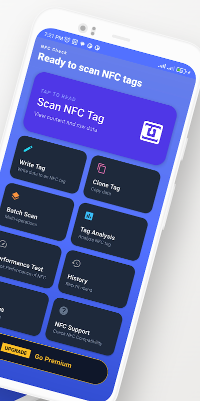 NFC Check makes it easy to scan, read, write, copy, and manage NFC tags, RFID cards, or contactless devices on Android. Use our NFC tool as your NFC scanner, reader, writer, and tag manager with features like Cloning, tag history, Batch scanning , and advanced analysis—built for both everyday users and professionals