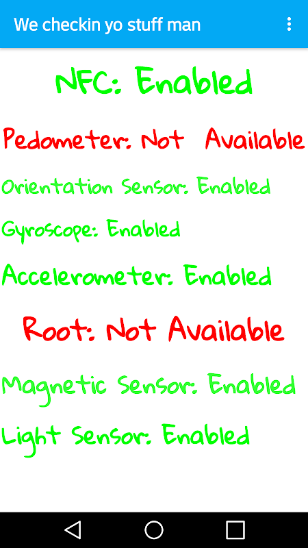 Check NFC and other sensors like Gyroscope or Accelerometer. Also R O O T. But we can't forget Pedometer, Orientation Sensor, Magnetic Sensor, and Light Sensor.