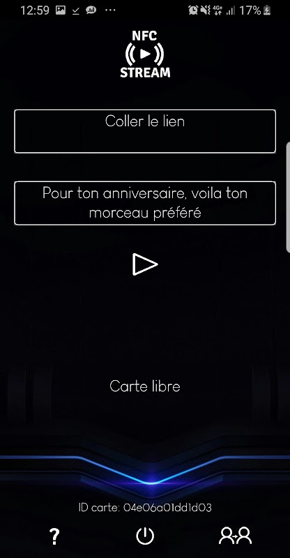 2 Open or return to the NFC STREAM app, . Paste your link. Validate and close the app to test, the music or video will then play automatically.