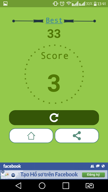 * Điểm số sẽ được lưu lại để thách đấu với bạn bè và bạn cũng có thể chia sẻ kết quả của mình trên facebook để khoe với bạn bè.