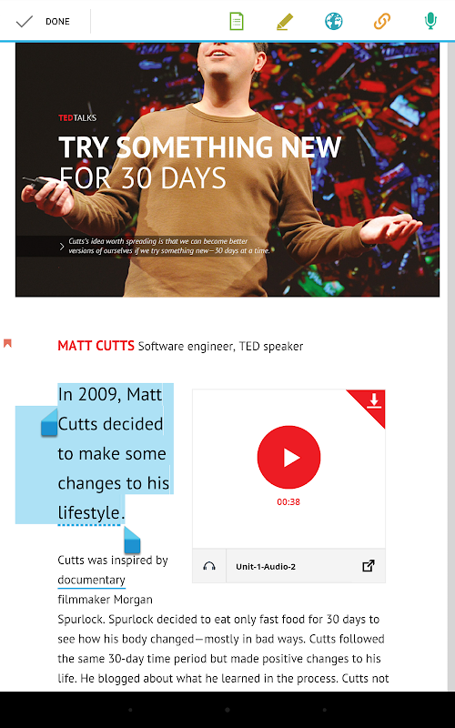 • Progress faster than ever. Access the program audio and video quickly and easily, right on the page.