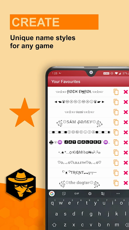 The Symbols Creator ⚡ Nickname Generator for Gamers app generates tons of cool results for gamers. The main features include: