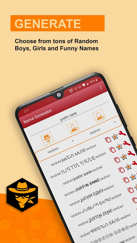 You will find funny and cool nicknames in our random name generator! That's not all! The nickname Generator app will customize your nickname with fancy text and aesthetic symbols!