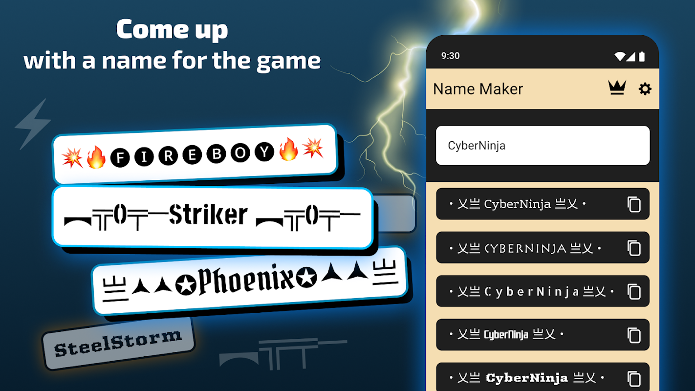 In a world where standing out is paramount, the Nickname Maker: Gamer Names app empowers you to elevate your online identity. Whether you're storming through games or making your mark on social media, the fonts aesthetic app's arsenal of symbols and extensive font selection, the nickname generator equips you with the tools needed to leave an indelible mark. Embrace the power of personalized expression and redefine your online presence with the Username Generator app today.👍