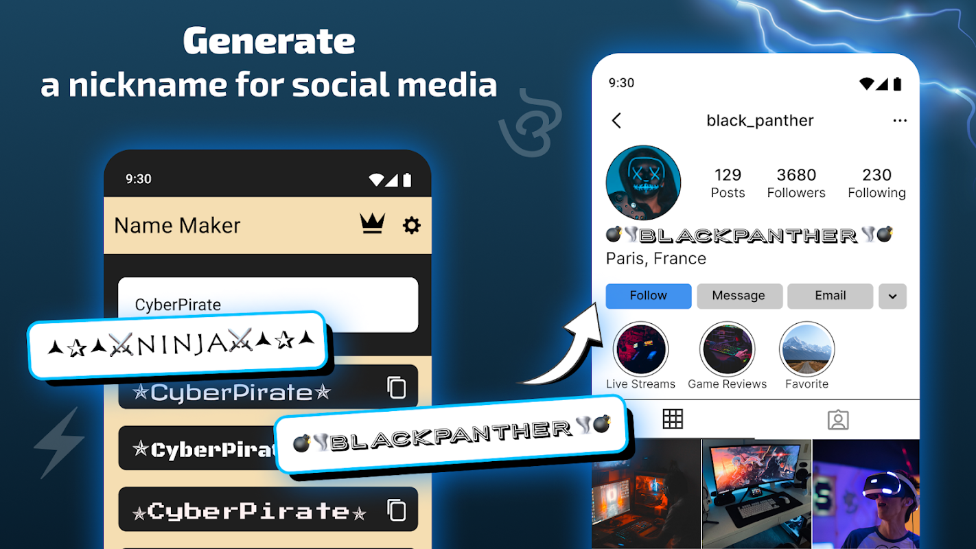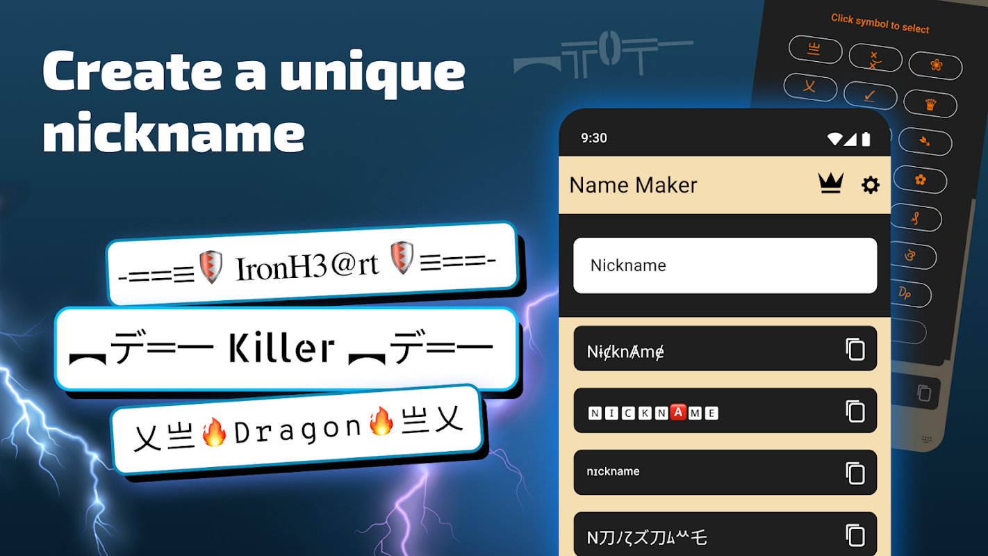 Unleash your creativity and stand out with this innovative nickname software, created to elevate your online presence. Whether you're a battle-royale champion or a social media pro, this symbols and cool fonts app is your gateway to crafting unique and eye-catching nicknames and amazing bios that are bound to turn heads.