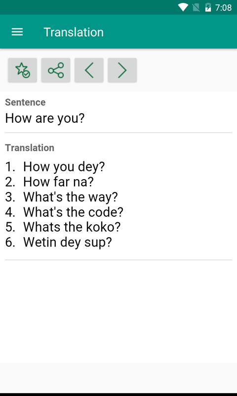 It is a great app for tourists and first-timers to Nigeria or have interest in learning it. We hope to provide better understanding to whosoever have difficulty understanding it that is why we have provided a huge collection of the finest pidgin including sentences converted to their equivalent in Pidgin. This will surely aid fluent interaction when needed.