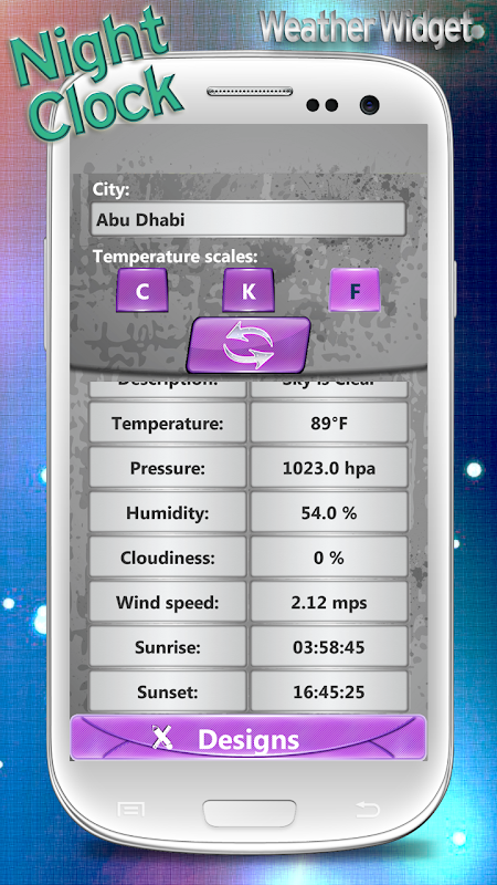 ★ Night Clock Weather Widget ★ is not only a digital clock, but also a very accurate weather widget which will provide you with accurate weather conditions both locally and globally. Hourly weather widget provides you with weather temperature in Fahrenheit, Celsius, and Kelvin. It also shows current humidity, pressure, wind speed, and cloudiness. This world weather forecast and time widget will be very useful to you wherever you are. You will agree that it is very cool to have both a digital clock widget and weather app on your home screen!