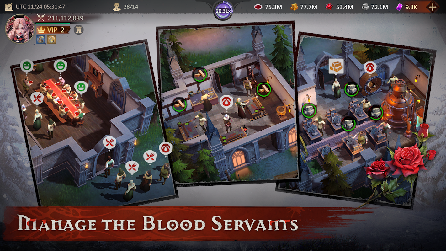 Start from scratch and build your Vampire territory, recruit Blood Squires to develop the economy, form Vampire Squads, research dark Technology, and enhance your strength.