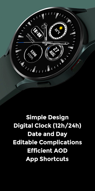 Analog / Digital Clock (12h / 24h), Editable Complications, Date and Day