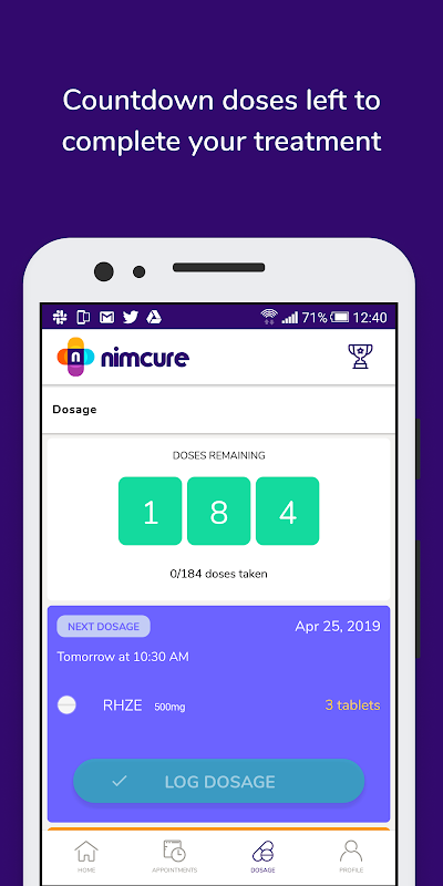 Nimcure is a digital care tool that promotes adherence to Tuberculosis treatment using the Video Observe Therapy (VOT) system. With Nimcure, patients and caregivers can better manage the treatment process remotely and on the go.