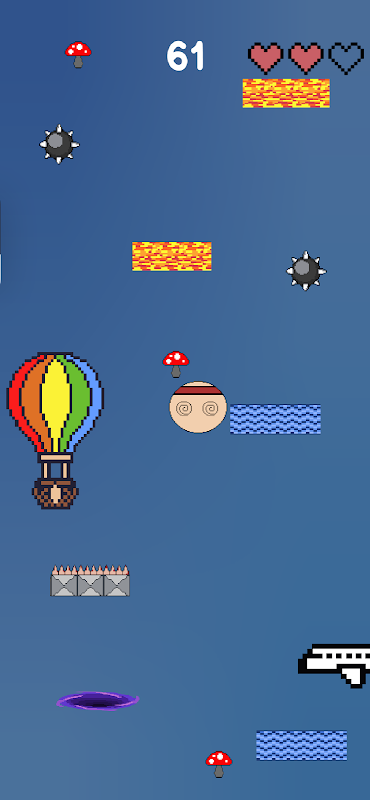 Play and win! The game Ninja Hop offers a proven game mechanic of tilting in an interesting version. Along with an online leaderboard that resets every month, players can compete with each other to get the highest score. Move between two dimensions, master the change of gravity and environment, avoid traps and collect scores throughout the month. The best wins! Ninja Hop is a fun 2D jumping game where your task is to get as high as possible as a ninja. Falling spiked balls, spikes or crumbling platforms will try to block your way. On the contrary, mushrooms will help you get up faster and thus get more points. Even a visit to space won't miss your trip. At the beginning, your ninja has 3 lives, which he gradually loses. After losing a life, the game starts over from the first island, but you do not lose your points for the given game, but they are still added to the table. After each loss of life, you can double your current points and thus gain an edge over other players. If you lose all 3 lives, the game is not over, only the ninja has to rest for a while. If you don't want to wait and want to play right away, you can also use this option.